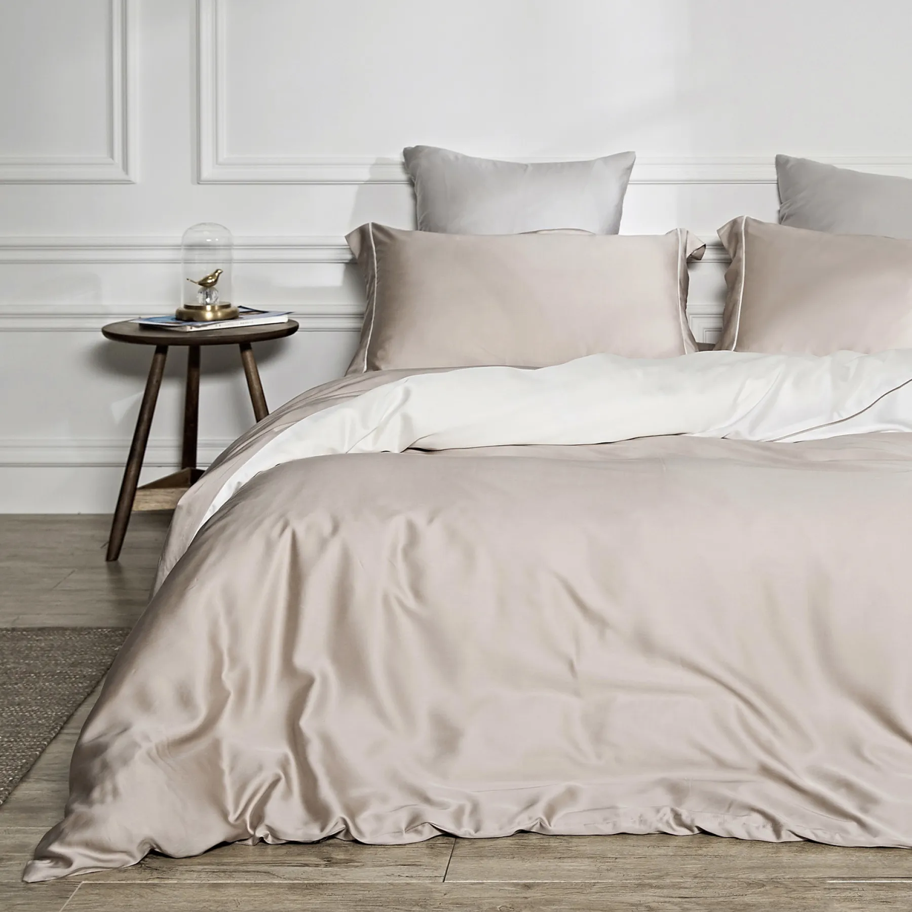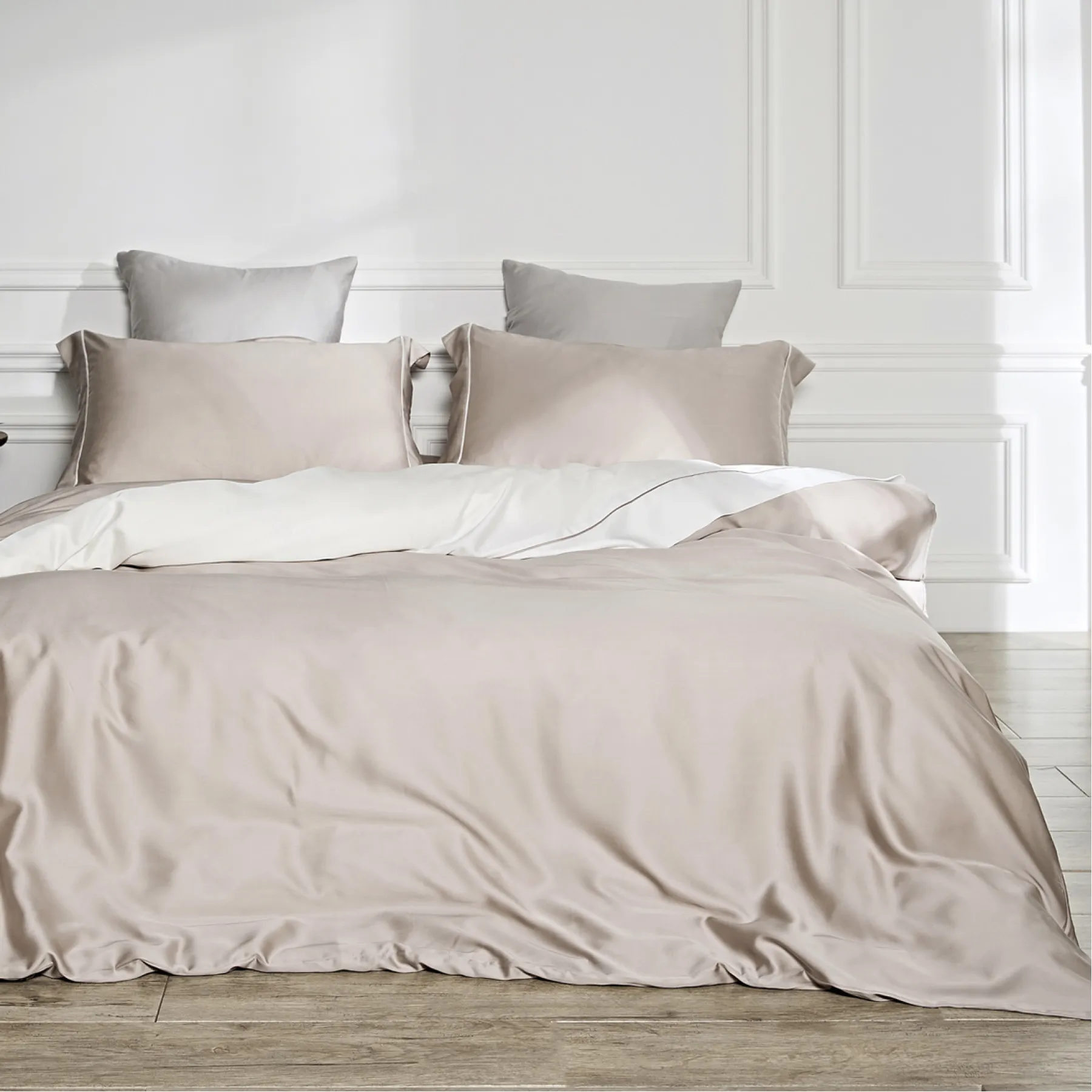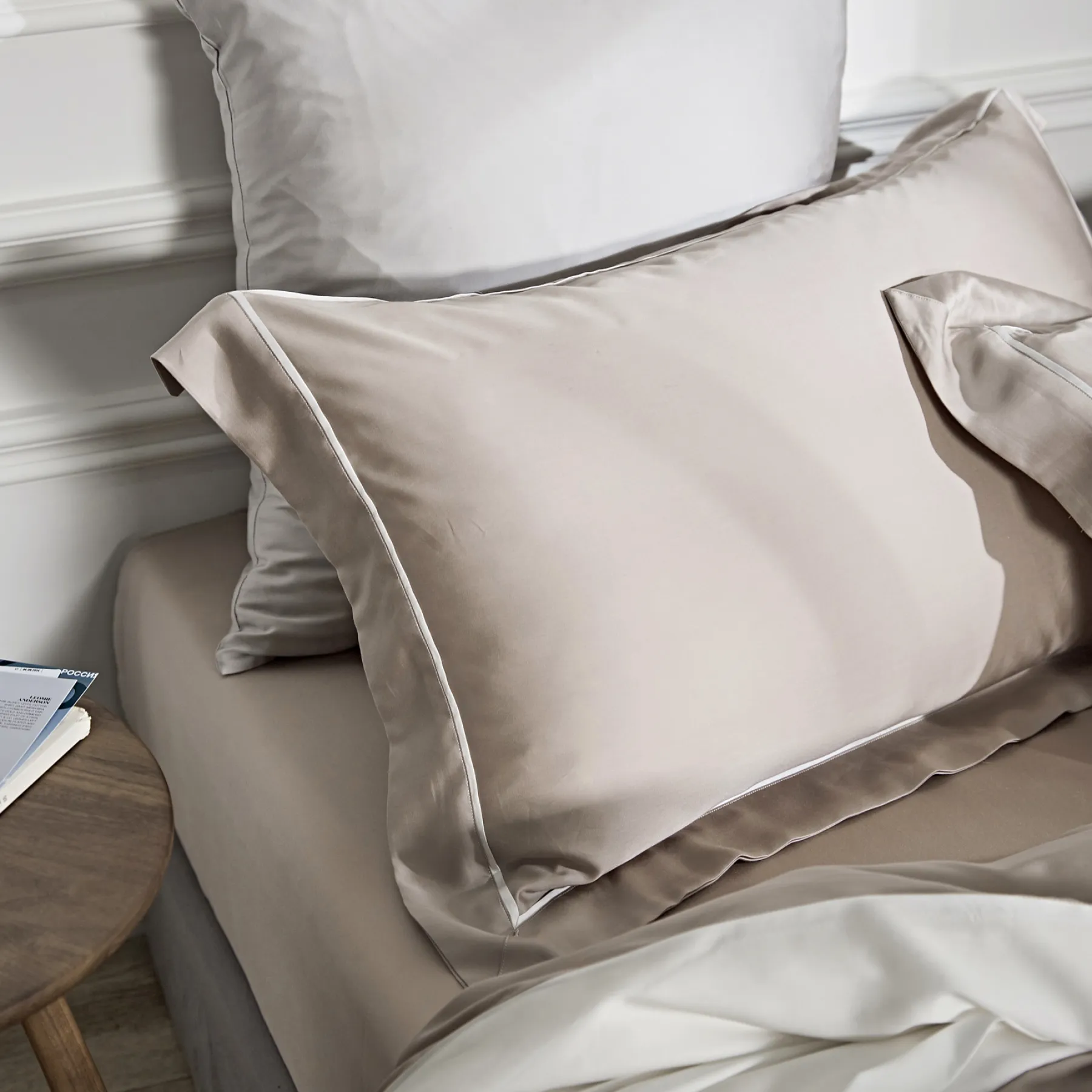 Тенсель — это натуральная ткань из эвкалиптового волокна, тоньше и деликатнее хлопка, при этом очень прочная. Её часто сравнивают с шёлком — и не случайно: постельное бельё из тенселя струится, дарит ощущение прохлады, но в отличие от шёлка — не скользит и не холодит.
