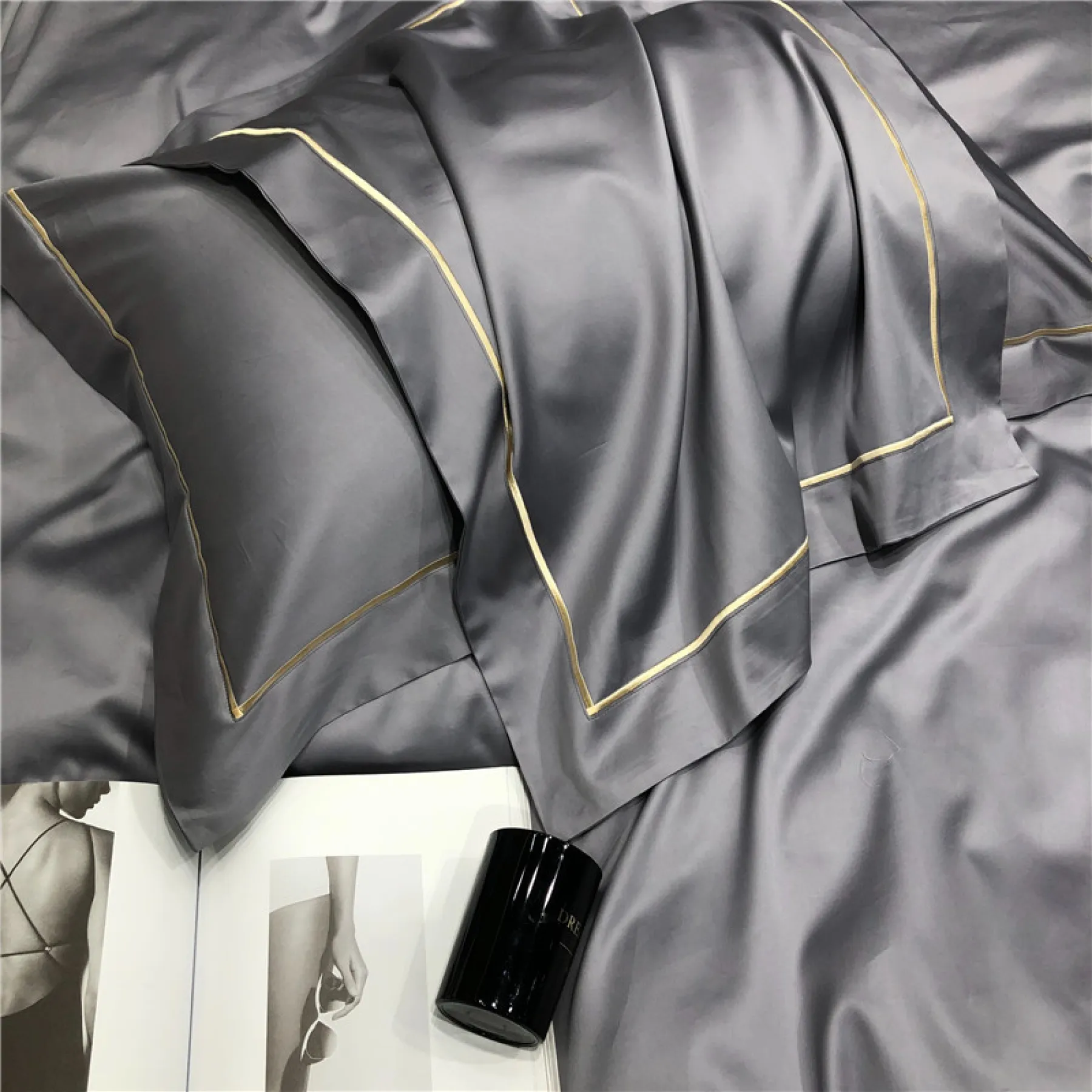 Детали: декоративная вышивка на наволочках и пододеяльнике, цвет нитей по умолчанию золотой, но можно выбрать индивидуальный цвет из палитры, пододеяльник на молнии, наволочки с глубоким клапаном