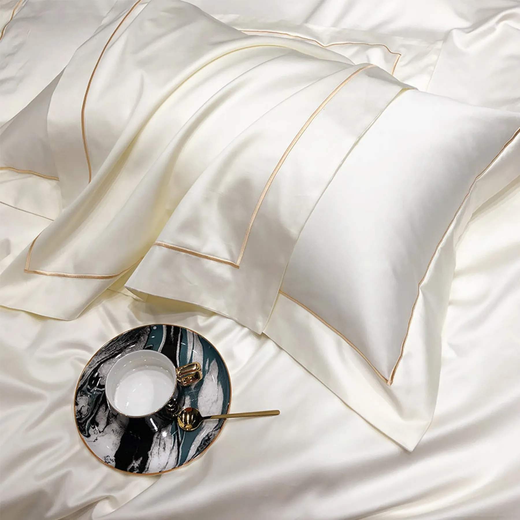 Детали: декоративная вышивка на наволочках и пододеяльнике, цвет нитей по умолчанию золотой, но можно выбрать индивидуальный цвет из палитры, пододеяльник на молнии, наволочки с глубоким клапаном