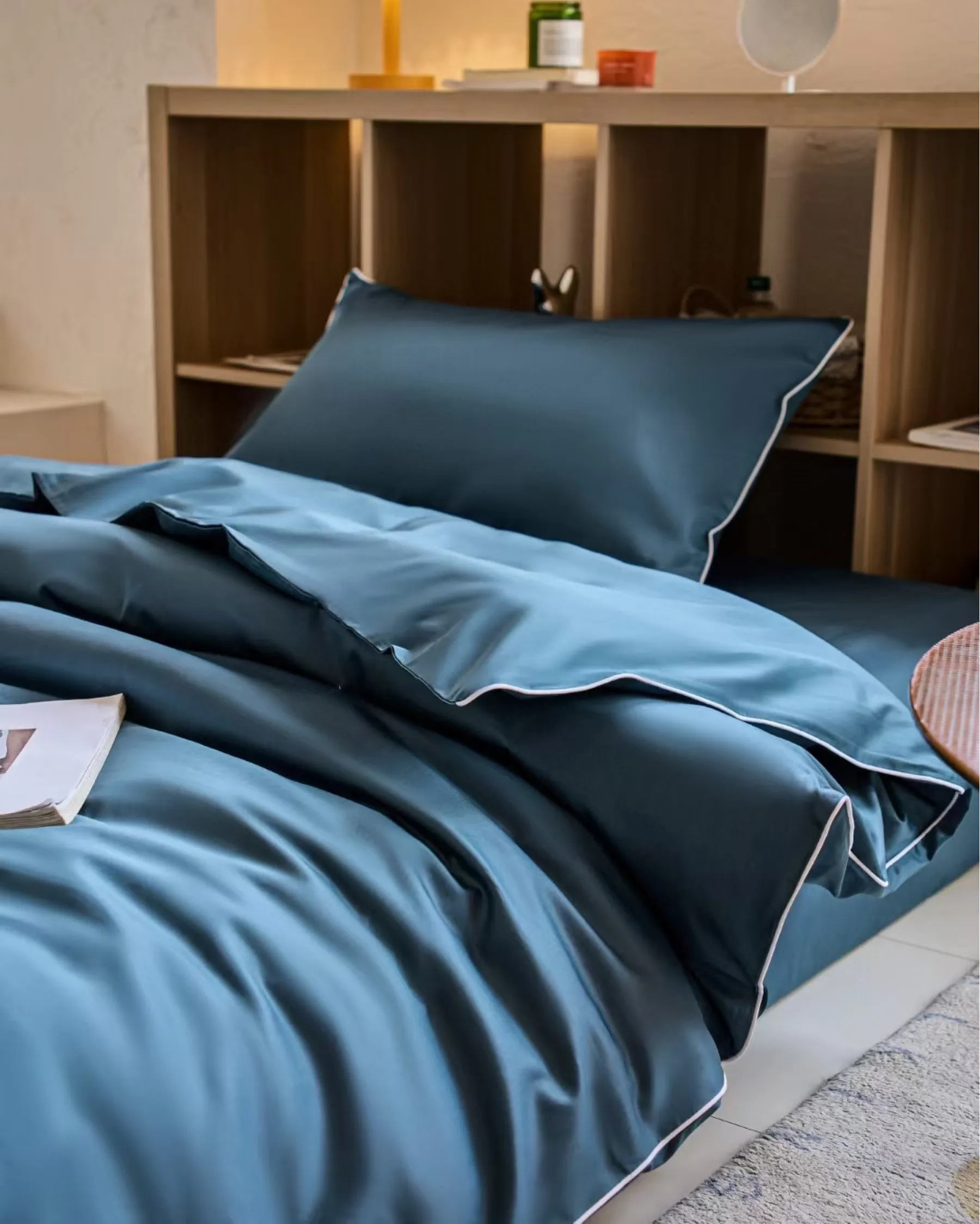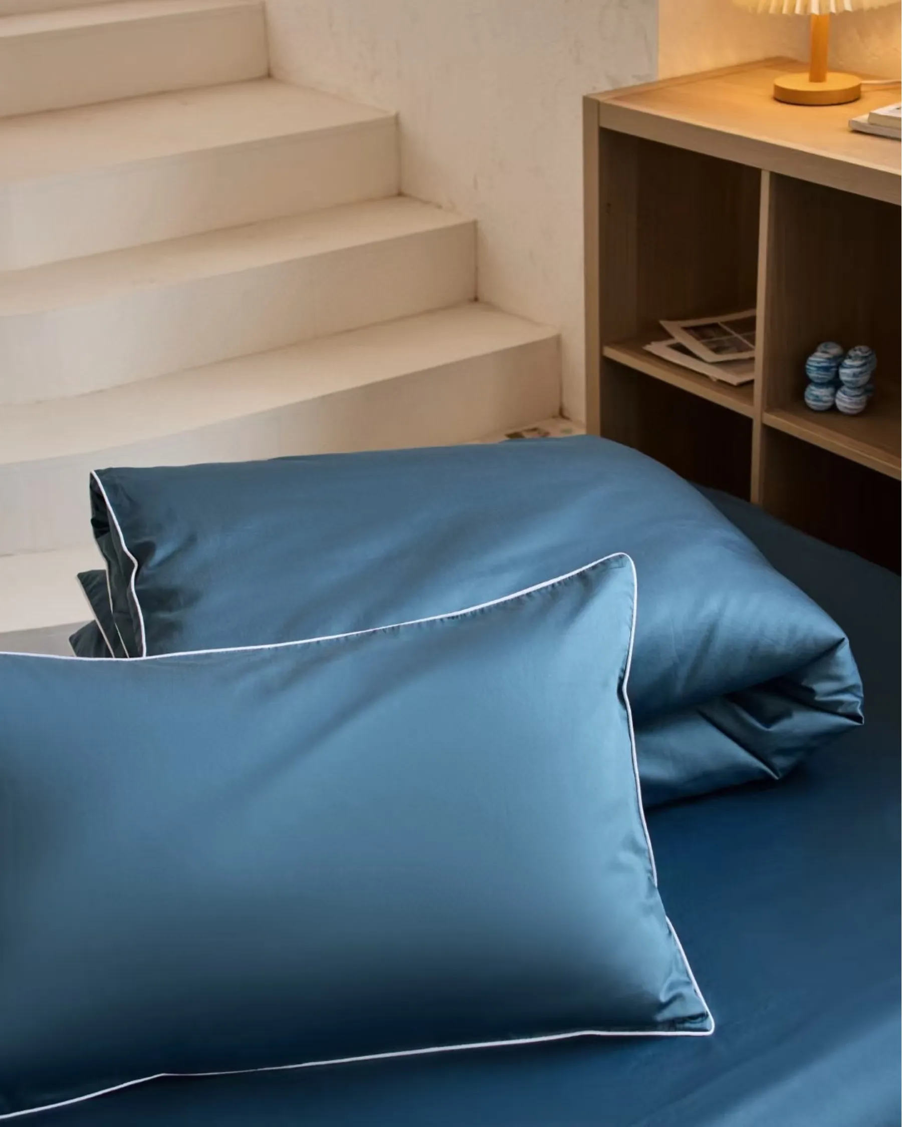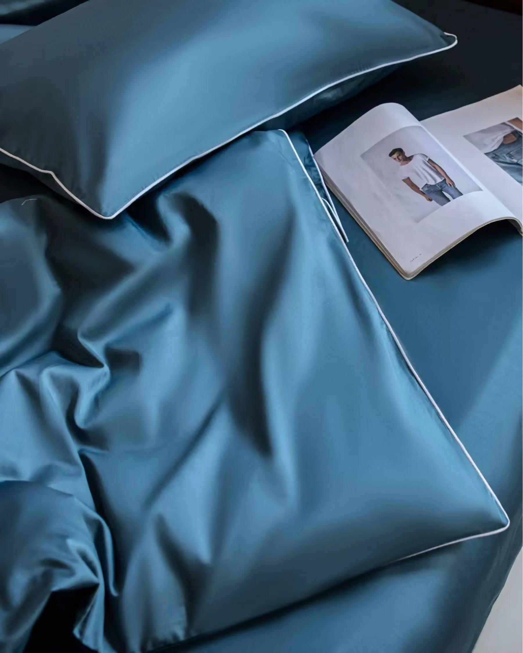 Стирка: при температуре до 40 градусов, используя жидкие средства для стирки натуральных тканей. Перед стиркой выверните все изделия наизнанку и застегните все молнии и пуговицы. Не перегружайте барабан — оставьте пространство для свободного движения белья, чтобы оно лучше отстиралось и дольше сохраняло привлекательный вид. При необходимости разделите комплект на две части. Не смешивайте с цветными вещами. Отжим: при 600–800 оборотах в минуту.