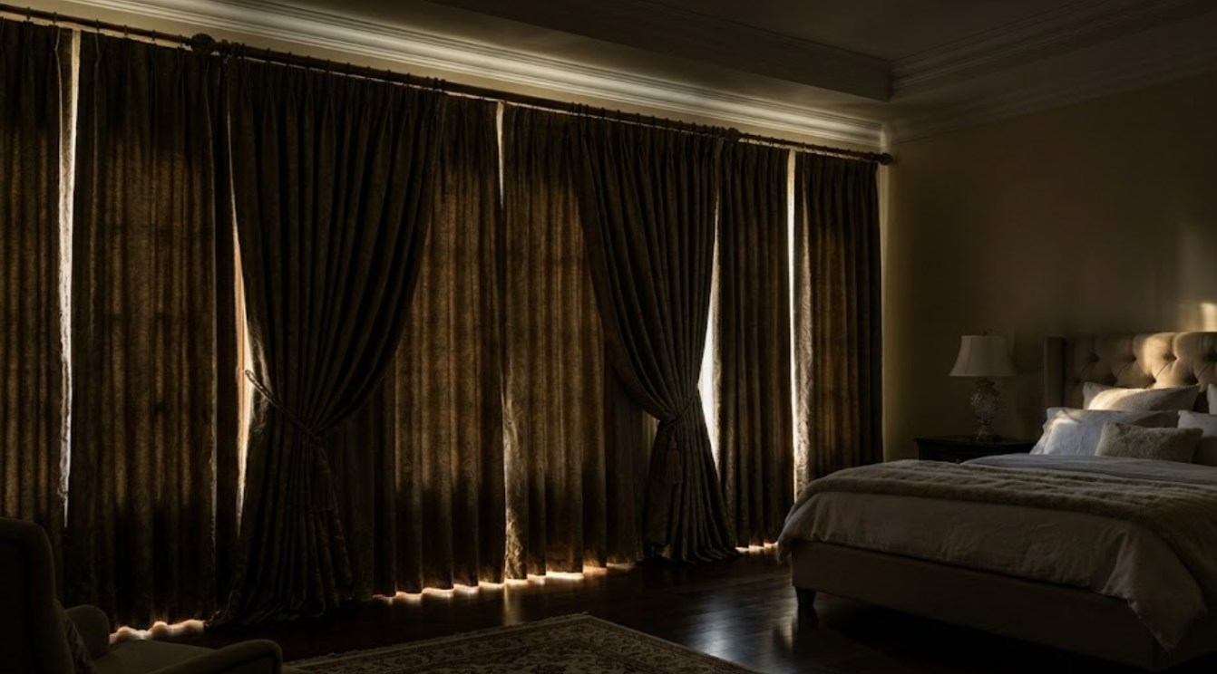 Для тех, кто ценит крепкий сон, мы часто предлагаем использовать ткань блэкаут. Этот материал блокирует солнечные лучи на 100%. Мы можем выполнять комбинированные модели, где шторы и тюль гармонируют по цвету и фактуре. Наш дизайнер всегда готов посоветовать лучшее сочетание, исходя из ваших предпочтений.