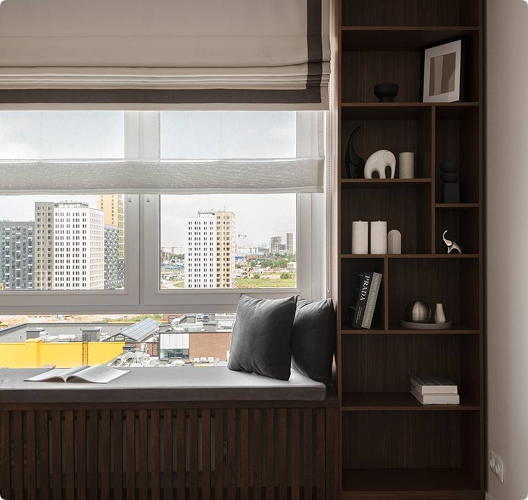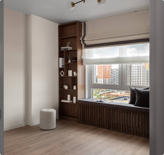 Вы выбираете ткань из сотен вариантов — от лёгкого тюля до плотного блэкаута, с учётом стиля и бюджета.