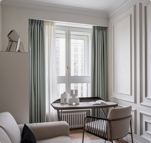 Наше ателье работает с премиальными тканями и предлагает полный цикл услуг: замер, подбор материалов, индивидуальный пошив и монтаж. Заказывая шторы у нас, вы получаете качественный результат «под ключ» — без хлопот и с гарантией.